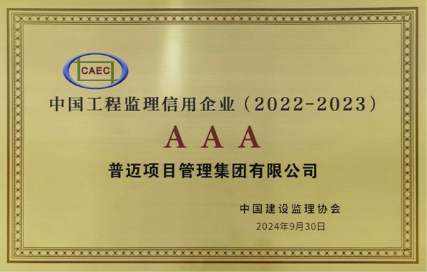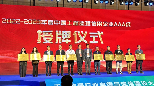 大会宣读了《中国工程监理行业自律公约》并举行了公约发布仪式,向全行业发出了《中国工程监理行业自律倡议书》;大会还公布了2022-2023年度中国建设监理协会单位会员信用评价结果,并为取得中国工程监理信用企业AAA级的80家企业代表举行了授牌仪式,我公司位列其中,获此殊荣。