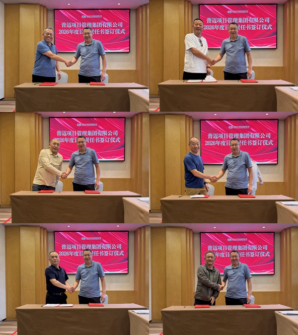 为明确2026年度工作目标,压实经营管理责任,凝聚全员攻坚合力,2025年12月7日,普迈项目管理集团有限公司举行了2026年度目标责任书签订仪式。公司董事长兼总经理景亚杰等高层领导及各职能部门、核算部门经理参会。