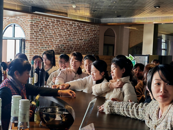随后,大家前往三原甲邑酒庄,开启一段别具风情的葡萄酒文化之旅。在酒庄讲解员的引导下,女员工们参观了酿酒车间和地下酒窖,深入了解葡萄酒的酿造工艺与发展历程。随后的品酒环节,大家细细品味不同品种的佳酿,感受酒香在舌尖绽放的细腻与层次,现场气氛轻松而愉悦。