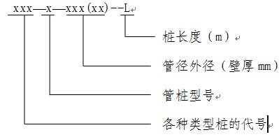 例如:PHC桩、AB型、外径为500mm,厚度125mm,桩长度12米,该桩的编号应为:PHC-AB500(125)-12;