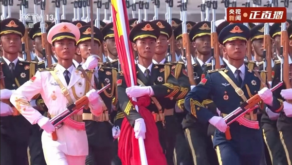 中国人民抗日战争是艰苦卓绝的伟大战争。在中国共产党倡导建立的抗日民族统一战线旗帜下,中国人民以铮铮铁骨战强敌、以血肉之躯筑长城,取得近代以来反抗外敌入侵的第一次完全胜利。此次阅兵盛典,以“铭记历史、缅怀先烈、珍爱和平、开创未来”为核心主题,展现出前所未有的庄严与恢弘。受阅部队军容严整、步伐铿锵,铁甲洪流昂首列阵、气势如虹,先进装备依次亮相、尽显锋芒。