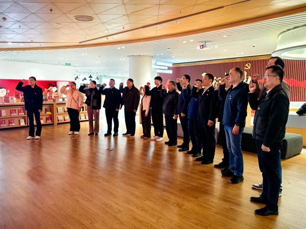随后,全体党员面向党旗庄严列队,举起右拳重温入党誓词,铿锵有力的誓言回荡在书院上空,进一步坚定了“不忘初心、牢记使命”的信念决心。