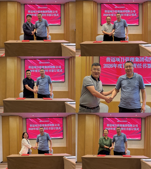 为明确2026年度工作目标,压实经营管理责任,凝聚全员攻坚合力,2025年12月7日,普迈项目管理集团有限公司举行了2026年度目标责任书签订仪式。公司董事长兼总经理景亚杰等高层领导及各职能部门、核算部门经理参会。