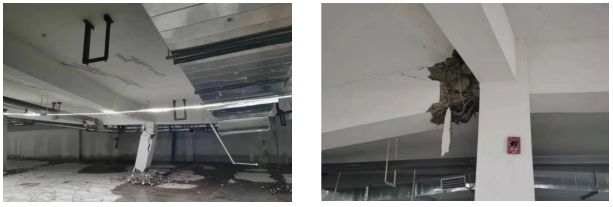 附图1   某车库顶板超载导致地下室结构产生破坏